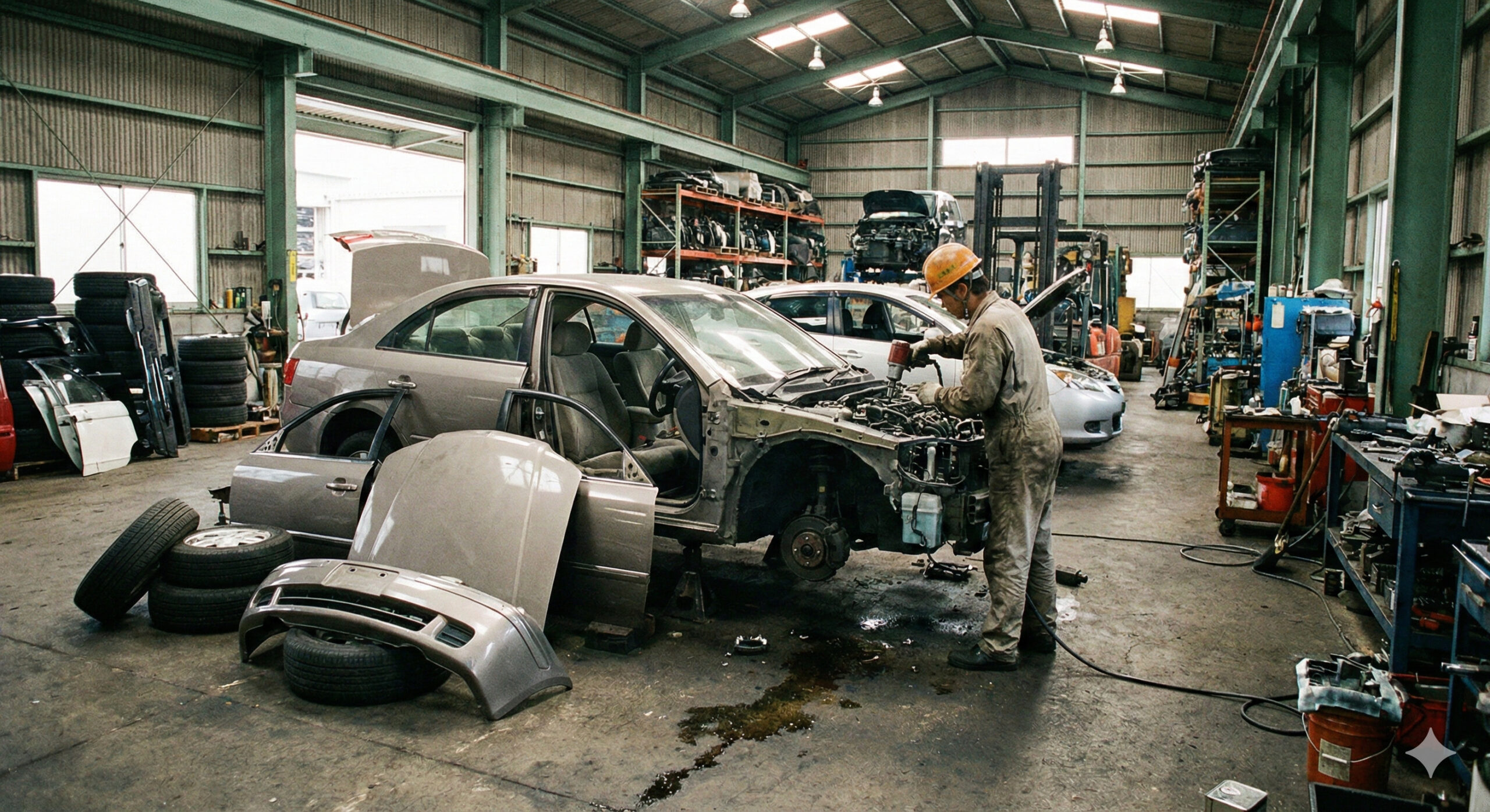 「解体」とは、自動車を金属や部品に分解し、リサイクル可能な素材と廃棄物に分ける作業のことを指します。